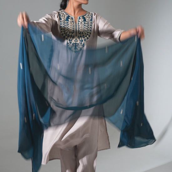 Color: Lilac Grey Kurta with Azure Blue Dupatta