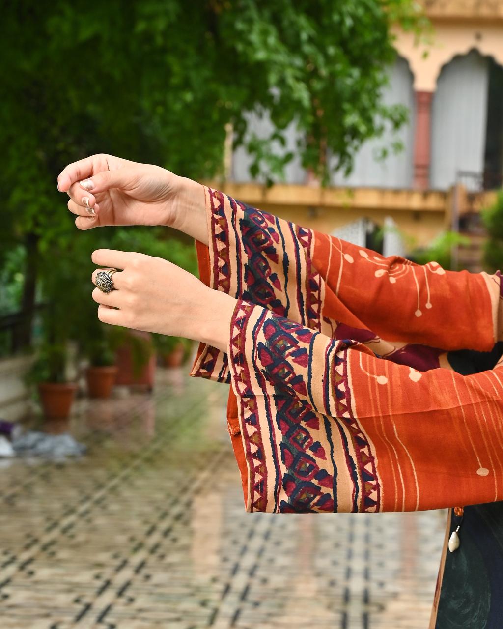 Turn heads this season with our Amber Glow Mirror Work Co-ord Set, crafted from heavy Liva rayon. The kurti features a striking rust-toned patchwork print, accentuated with original mirror detailing and elegant shell work along the hem. Paired with coordinated straight pants, this set blends festive charm with contemporary style — perfect for special occasions, festive evenings, or statement day wear.