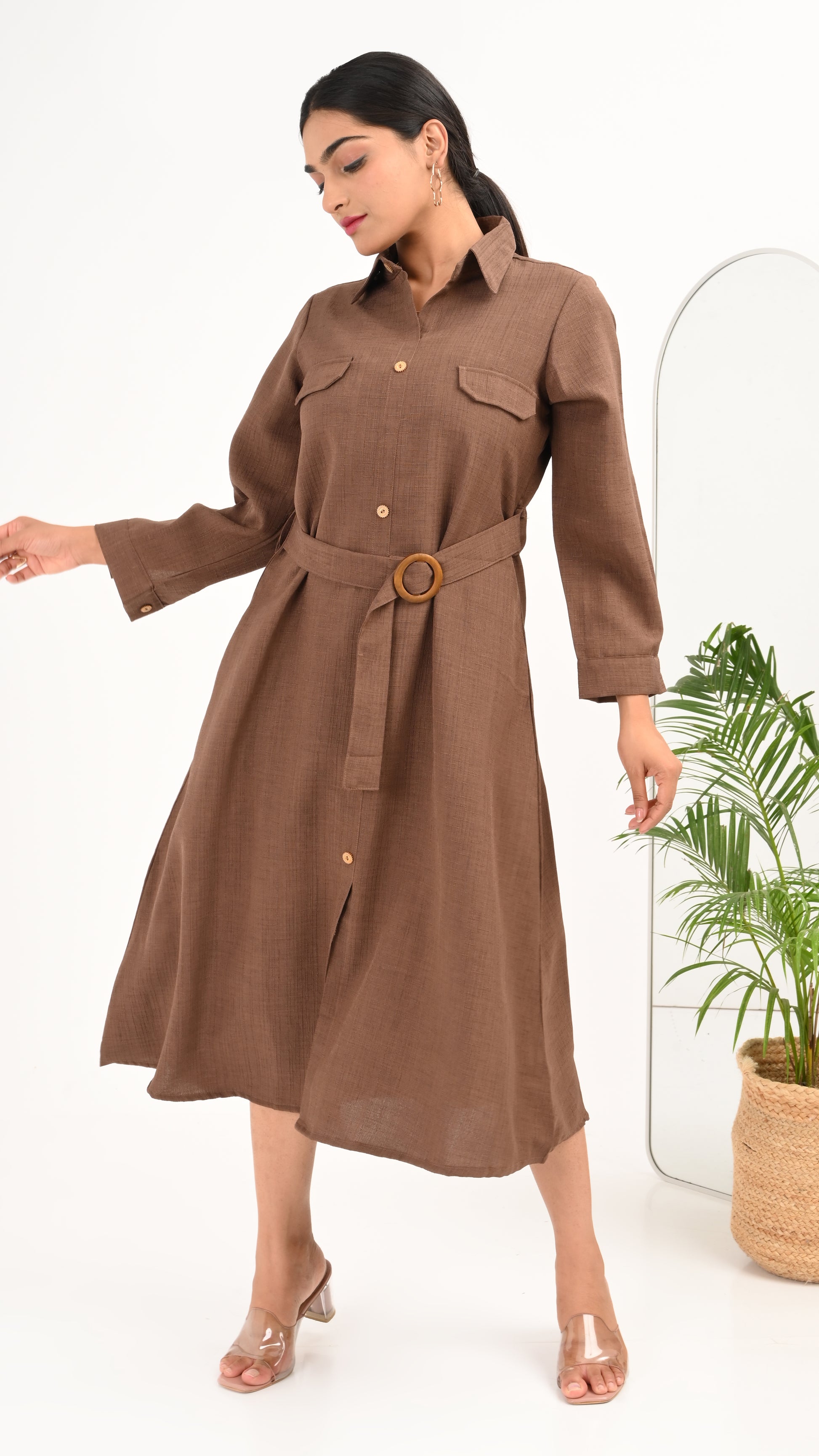 Includes: Midi Shirt Dress with Belt & Wooden Buckle