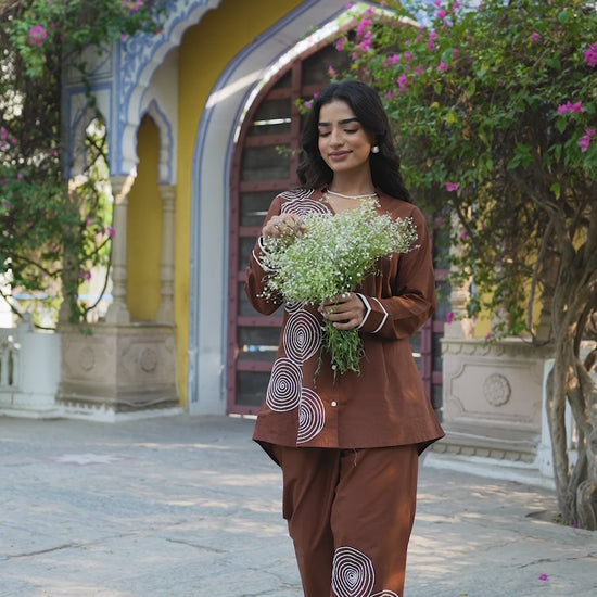 Coffee Spiral Pure Jaipuri Cotton Co-ord Set
