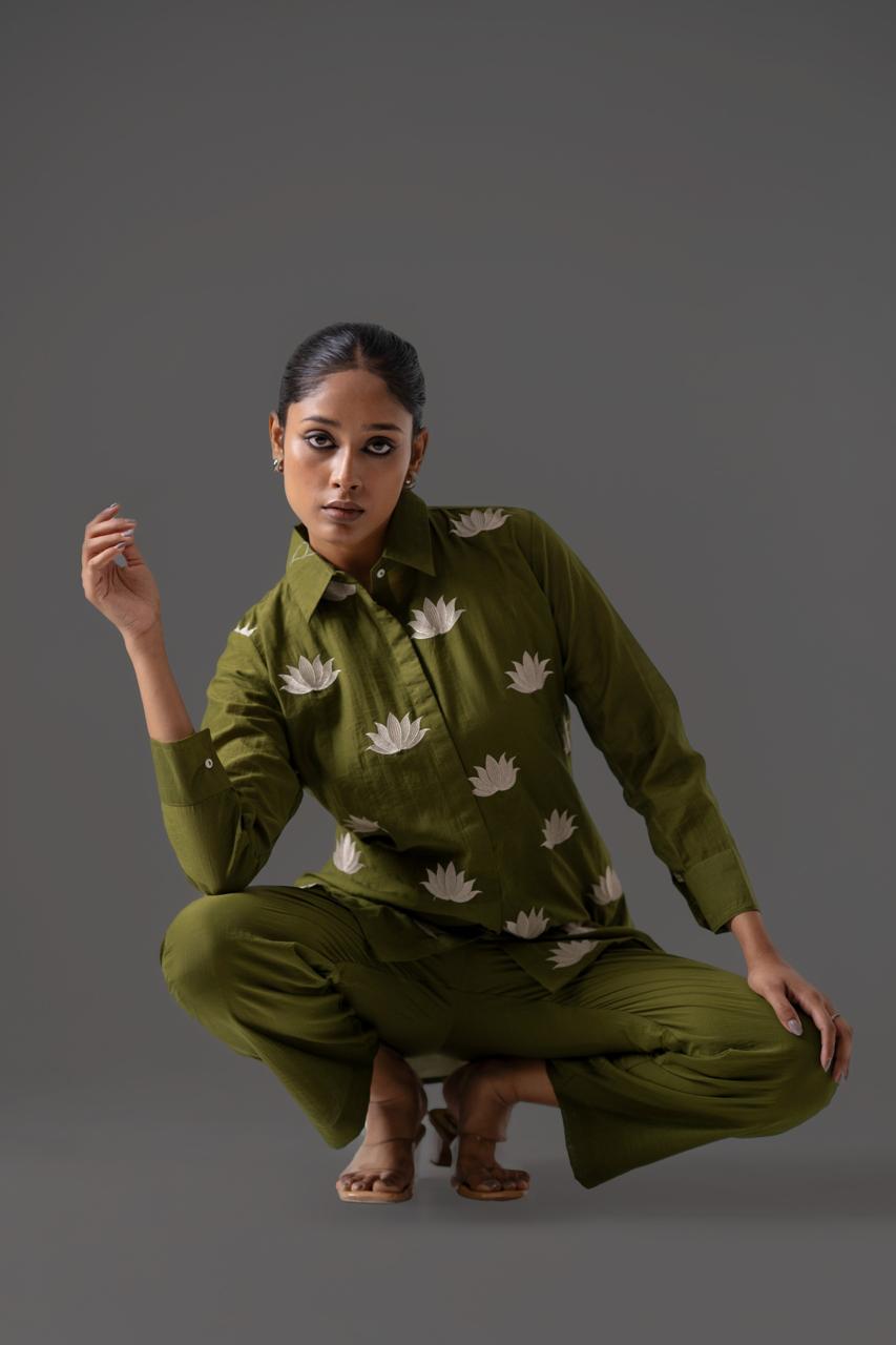 Olive Lotus Pure Banarasi Mul Chanderi Co-ord Set