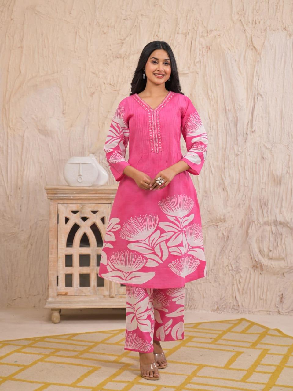 Drenched in a radiant pink hue and splashed with oversized ivory floral prints, this set is your go-to for feel-good fashion. Perfect for sunny strolls, café dates, or just being your vibrant self!